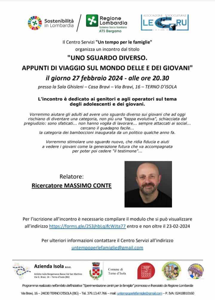27 Febbraio 2024 ore 20:30, presso la Sala Ghisleni - Casa Bravi, 16 - Terno d'Isola.